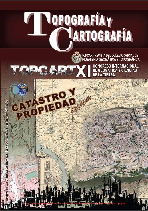 Tendrá lugar los días del 26 al 30 de Octubre en Toledo (España). El TopCart 2016 contará con cinco comisiones principales en las que la Geomática juega un papel relevante: La Comisión 4 es la que corresponde a Catastro y Propiedad. Las temáticas relacionadas con esta comisión tendrán lugar los días 27 y 28 de Octubre.