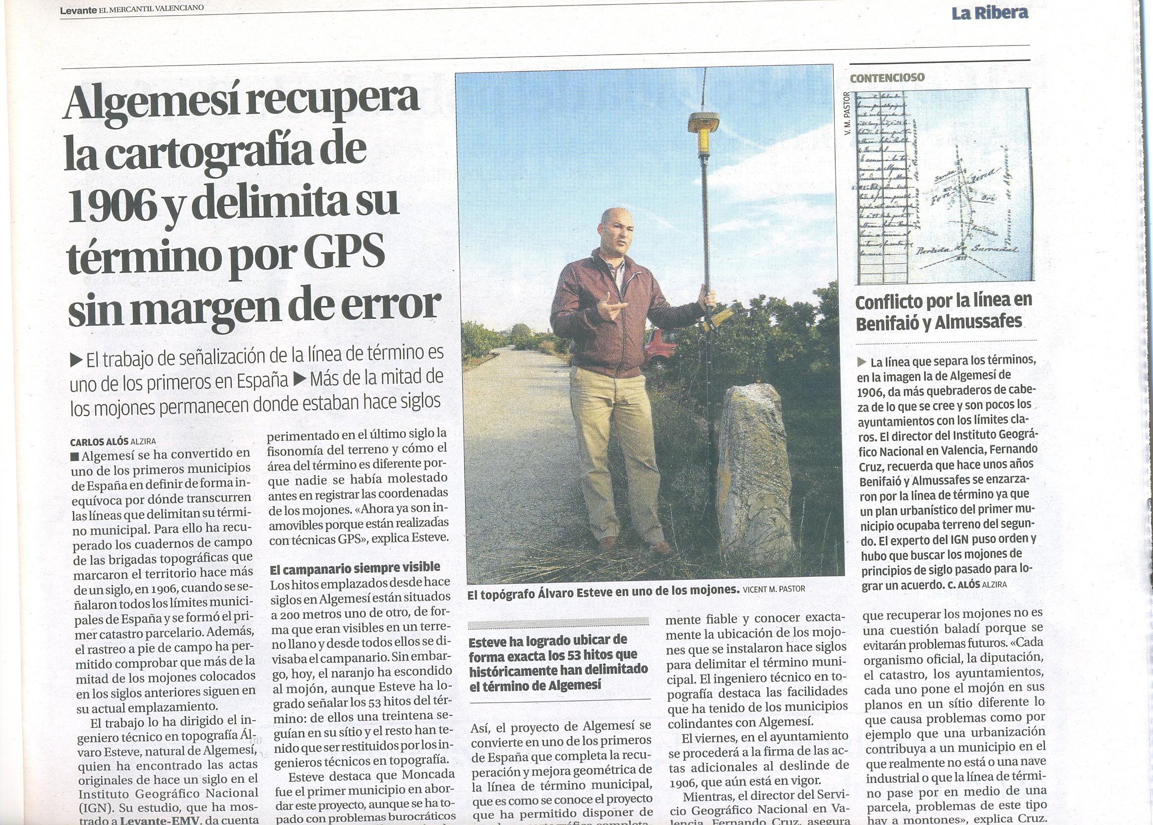 A continuación os incluyo un recorte de prensa sobre el deslinde de Algemesí, un muncipio de la provincia de Valencia (periódico Levante, edición de la Ribera).