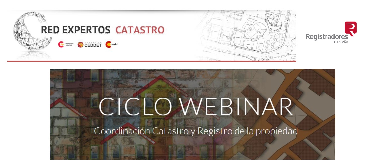 Se presentan las 6 sesiones (en videos de aproximadamente 1 hora cada uno) del ciclo de webinar realizado desde abril a julio de 2019 a través de la Red de Expertos Iberonamericanos en Catastro de la Fundación CEDDET. Red enmarcada en el programa Intercoonecta de la Agencia Española de Cooperación Internacional para el Desarrollo (AECID). Dicha fomación es impartida por personal de la Dirección General del Catastro (DGC) y del Colegio de Registradores de la Propiedad y Mercantiles de España (CORPME).