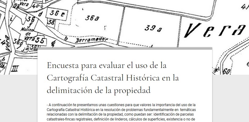 – Es muy importante que nos respondas de modo sincero a las cuestiones planteadas (no te llevará más de 7 minutos, son 20 preguntas), ya que nos permitirá conocer tu opinión sobre la utilidad de la cartografía catastral histórica.